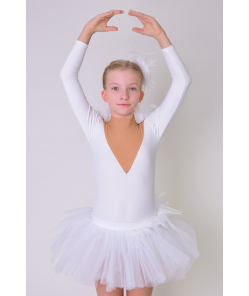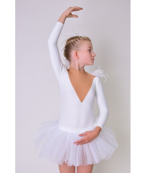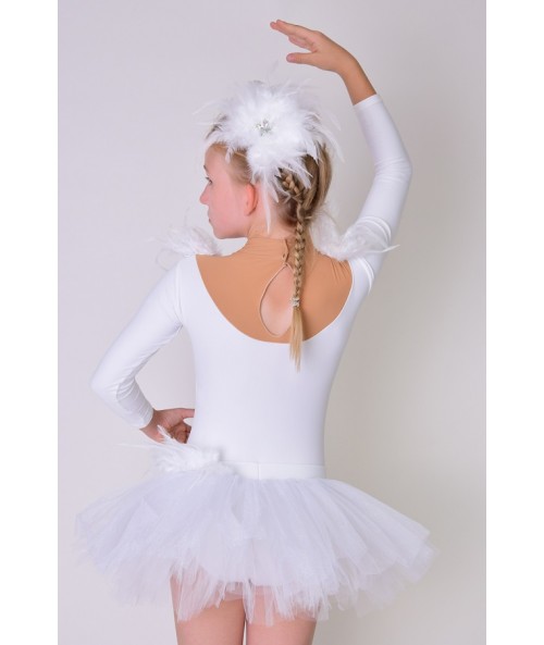 Body aus mattem Lycra mit Federn verziert. Mit Knöpfen um den Hals.