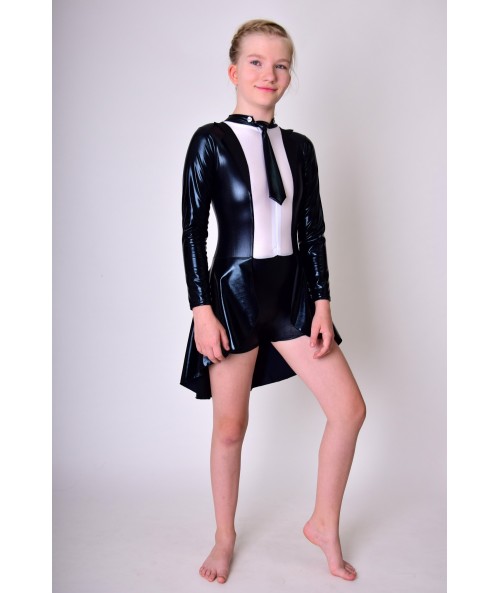 Aus elastischem Stoff, der Latex imitierten, und glänzendem Lycra.