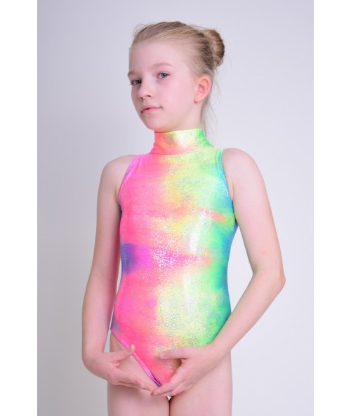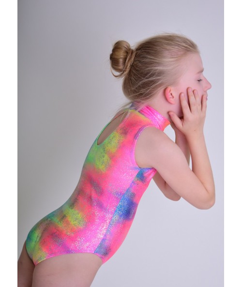 Tanzbody aus regenbogenfarbenem und glänzendem Lycra mit Brokat