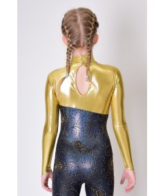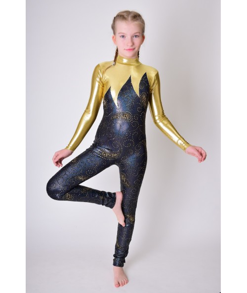 Acrobatics bodysuit made with metallic decorated Lycra.