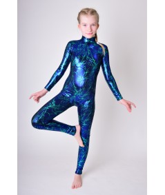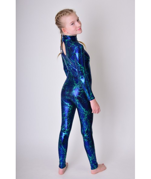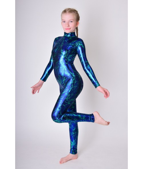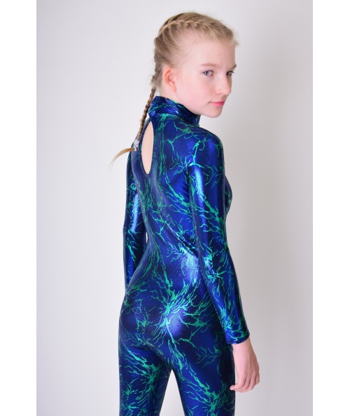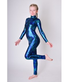 Kombinezon akrobatyczny wykonany z metalicznej zdobionej lycry.