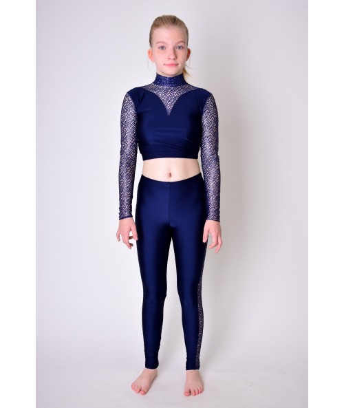 Legginsy wykonane z połyskującej lycry połączonej z siatką o dużych oczkach.