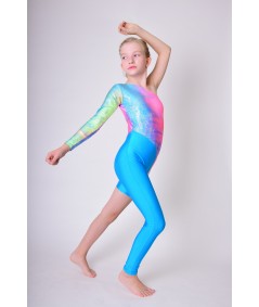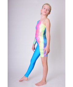 Kostium akrobatyczny oraz do różnych form tańca wykonany z połyskującej oraz tęczowej lycry.