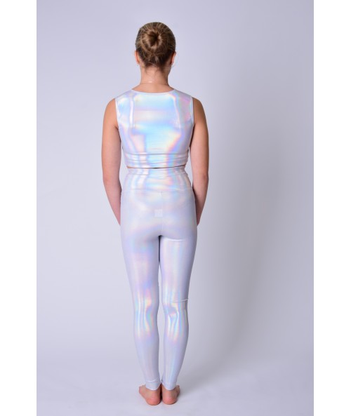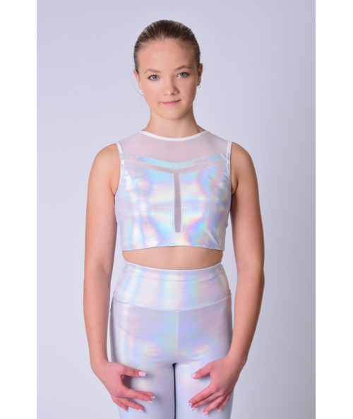 Top wykonany z metalicznej lycry oraz elastycznej siatki.